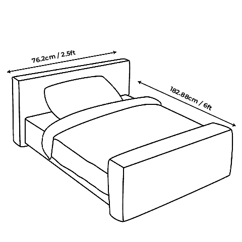 SINGLE BED 2.5FT WIDTH X 6FT LENGTH (76.2cm x 182.88cm)